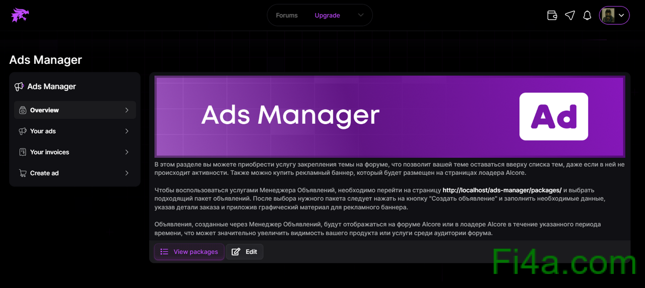 Ads Manager - Менеджер рекламы (для продажи и выставление рекламы)