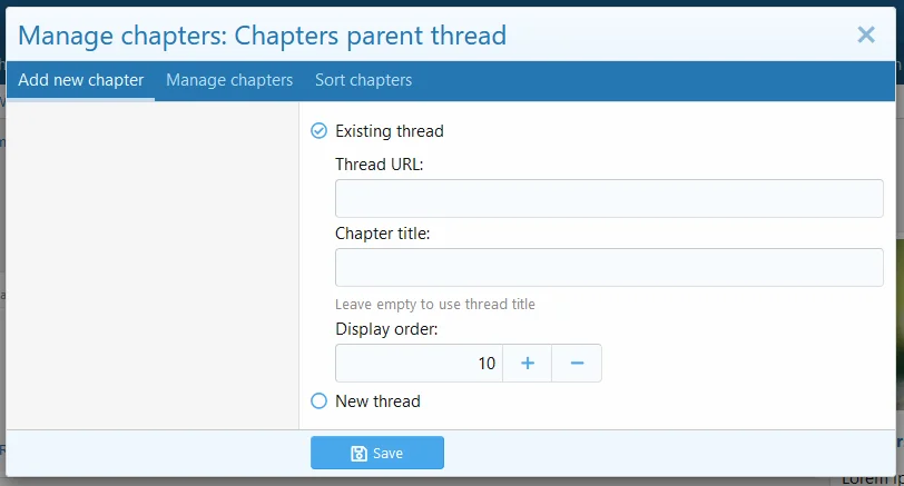 Специальный узел форума, который можно использовать для организации и представления глав, не загромождая основной форум. «Хлебные крошки» связанных тем будут отображаться так, как если бы тема главы находилась на том же форуме, что и основная тема.