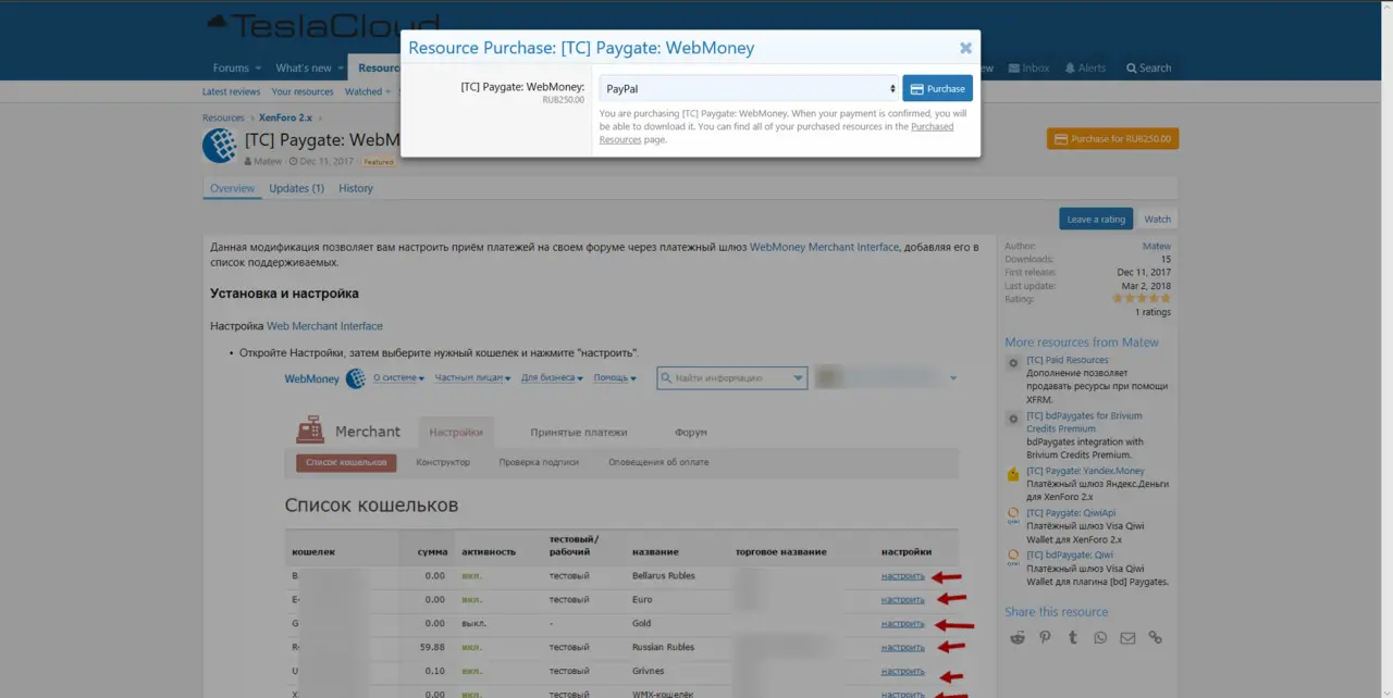 Данное дополнение позволит вам продавать ресурсы в XenForo Resource Manager, используя встроенные в XenForo платежные профили.