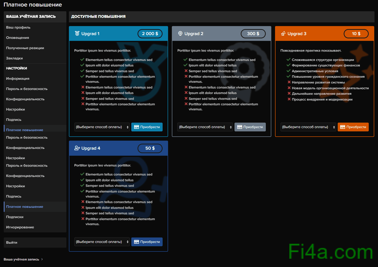 [SVG] Upgrades Page - Кастомная страница платного повышения.